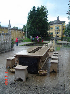 Despite the bad weather, sightseeing plans continued! Took a cruise ride down to Hellbrunn Schloss.... It is not a typical palace but rather, a very fun palace!