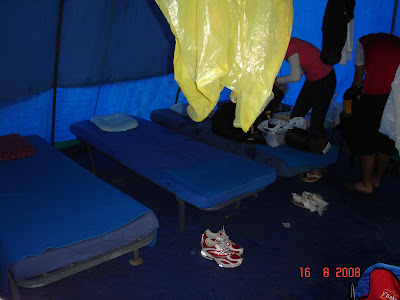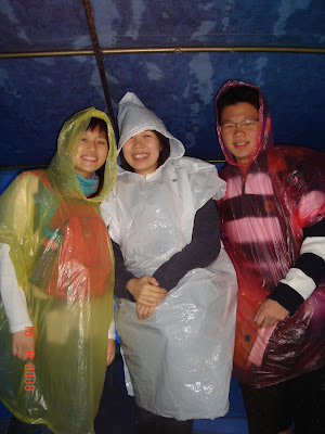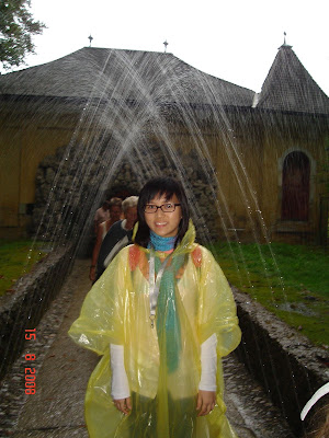 Checked in to our camping site later that night. It was our first try to stay in a tent! Its cheaper and looks rather clean (but we were infested by some bugs throughout the whole trip =( ) Busy unpacking... Thats 5 beds in a row. Thank god there was shower room with hot water in the camping site! But.... it rained for 2 whole days while we were in Salzburg. So much rain that even the tent gave way to water, we woke up with wet sleeping bags... Look! And we also had to wear poncho the whole day. We looked so comical eh?